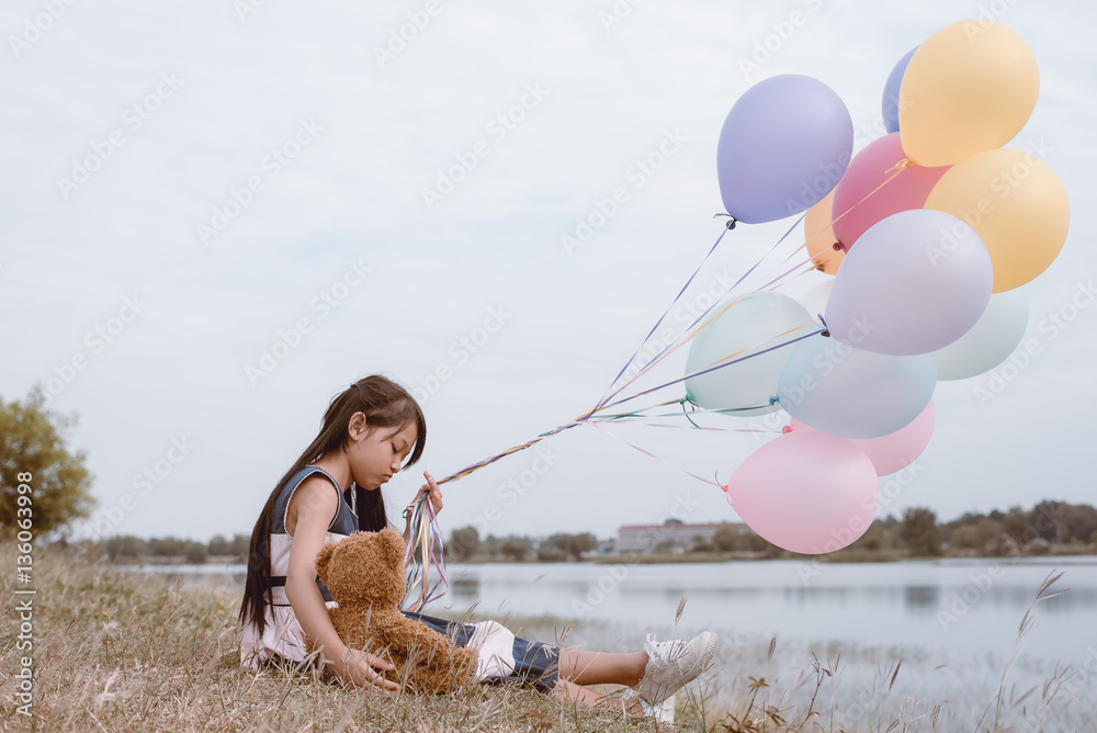 A Girl Holds A Balloon Sitting Alone With A Teddy Bear Stock Photo Adobe Stock